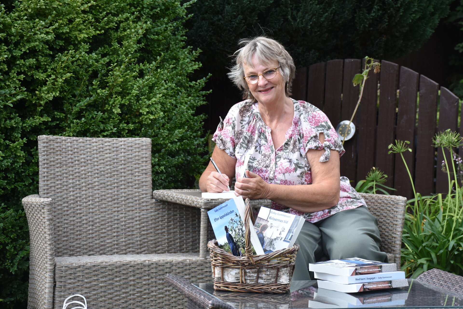 Gaby Gummesson är författaren till Emma Li böckerna som utspelar sig på Österlen under åren 1914-1932. Hon är nu aktuell med femte boken i serien som berättar om det kvinnoöde som ligger till grund för boken och om syftet med att skriva. Hon berättar också anekdoter om vilka oväntade turer och positiva effekter det kan få att börja skriva böcker på äldre dar. Hemligheten om hur just Gunnarshögs gård är inblandad i den senaste boken röjs också. Korta smakprov ur böckerna läses upp och dessa säljs till specialpris.